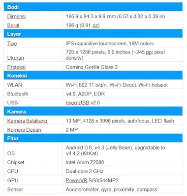 - Pengguna lebih leluasa dan puas saat memakai smartphone ini karena hadir dengan layar ukuran 6 inci dengan ketajaman layar 245